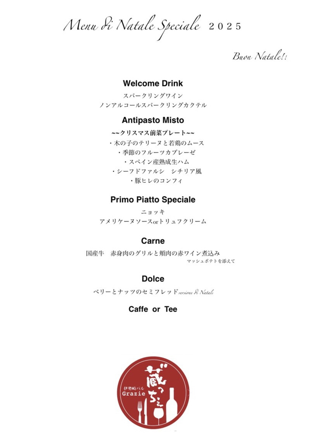 ※12月の24・25日は、クリスマスコースのみの営業となります。